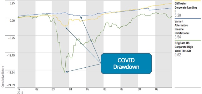 Private Debt as an asset class, represented by the Cliffwater Direct Lending Index (CDLI), below, has historicontacty (last 19 years) demonstrated an illiquidity return premium of 6.3% over S&P/LSTA U.S. Leverage Loans Index (the public market counterpart).